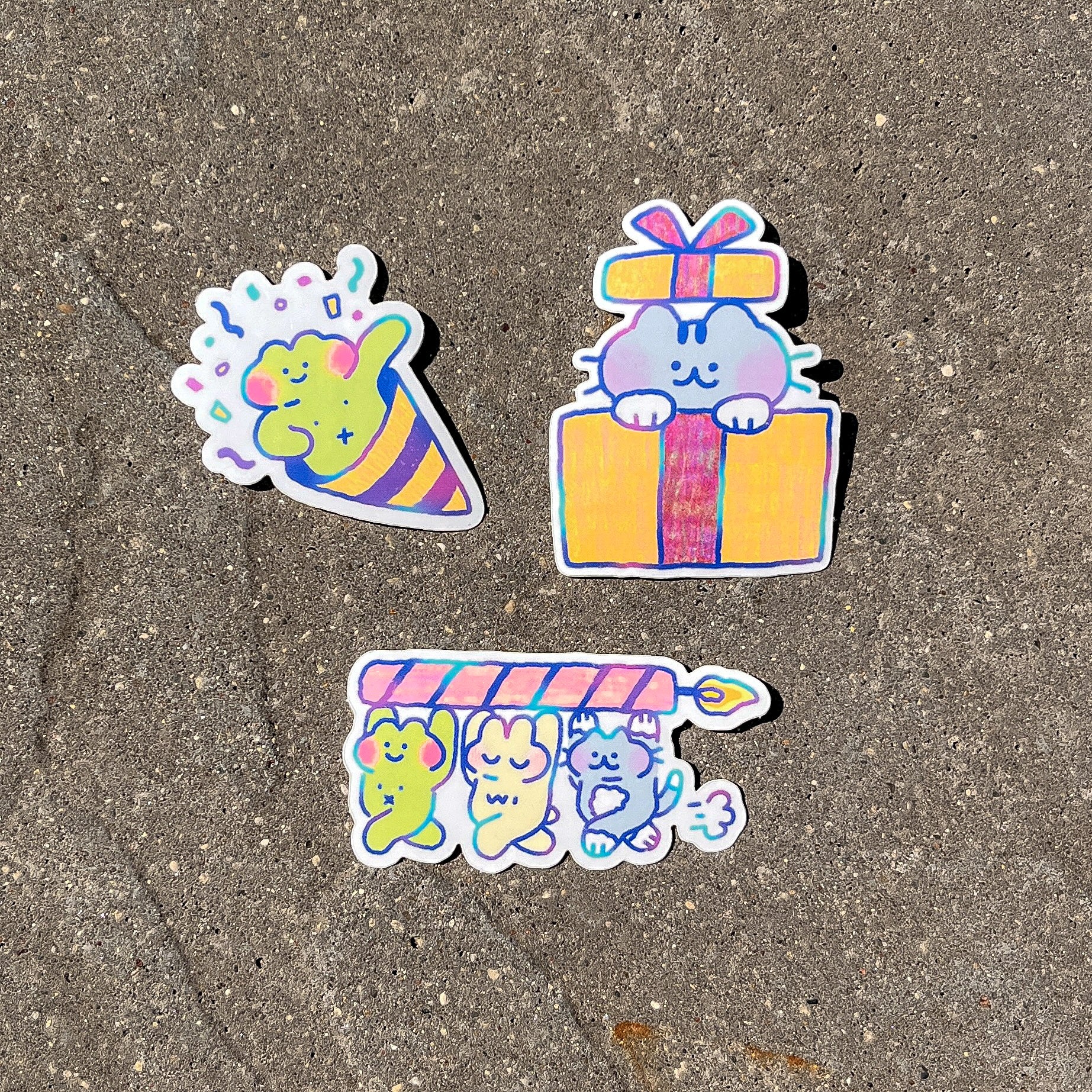 birthday stickers - frog, cat, bunny