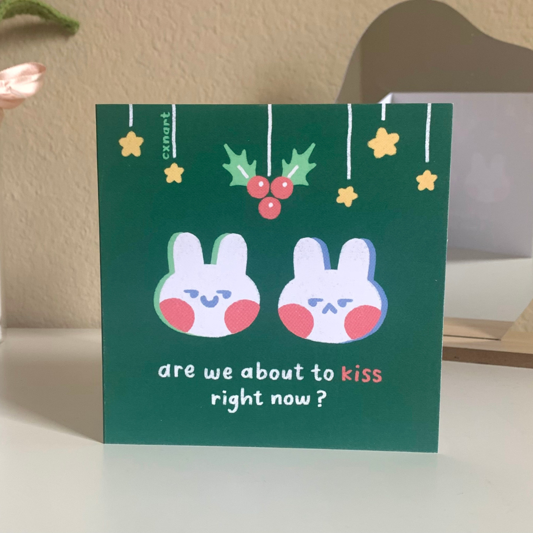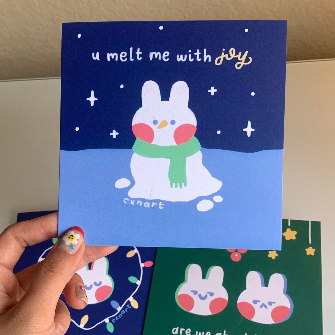 A mixed set of Holiday & Christmas cards featuring my illustrations of a white bunny. A blank inside for your message, suitable as a greeting card for Christmas and/or other winter, holiday occasions.